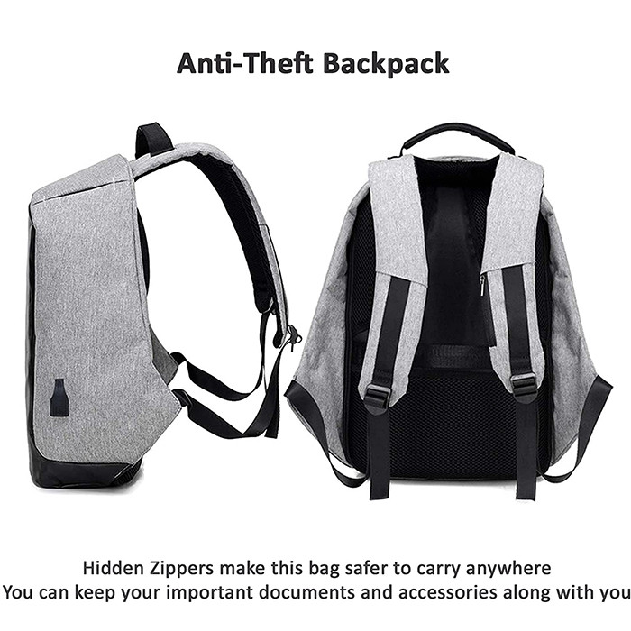 Trouxa contra-roubo do negócio com porto de carregamento de USB/a trouxa/à prova de água de pouco peso do portátil para o estudante, os homens & as mulheres - cinza